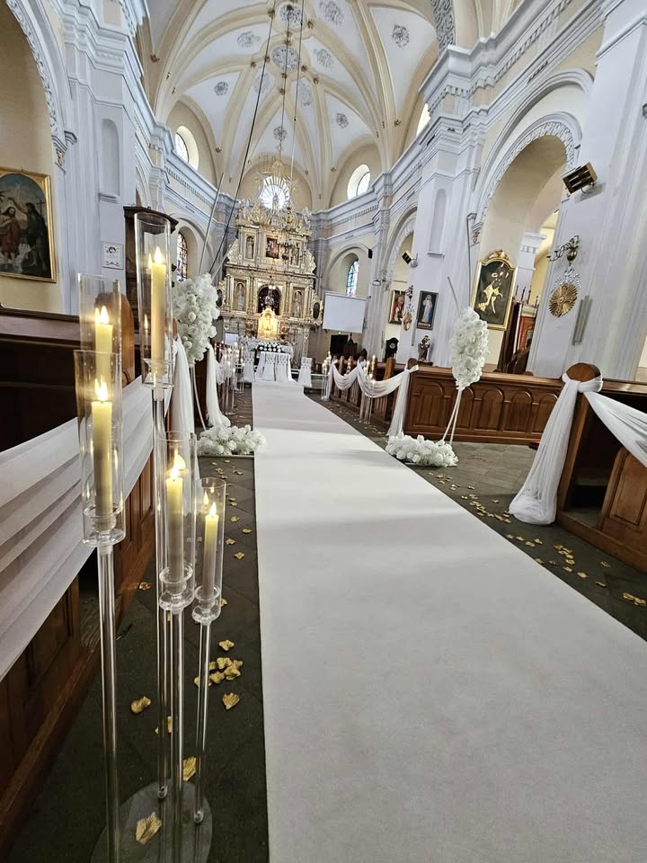 W naszej ofercie dekoracji kościoła na ślub znajdują się wszystkie elementy potrzebne do stworzenia niesamowitej scenerii na ślub, są to: białe tkaniny szyfony i tiule, własne krzesła, klęczniki, biały lub czerwony dywan, łuki z kwiatami, świece, płatki, świeczniki, kwiaty, oprawa florystyczna, kompozycje kwiatowe pod i na ołtarze, latarenki, szklane tuby, podesty, szkło i wiele innych elementów dzięki którym aranżujemy niezwykłe scenerie, klimatyczne i zachwycające.