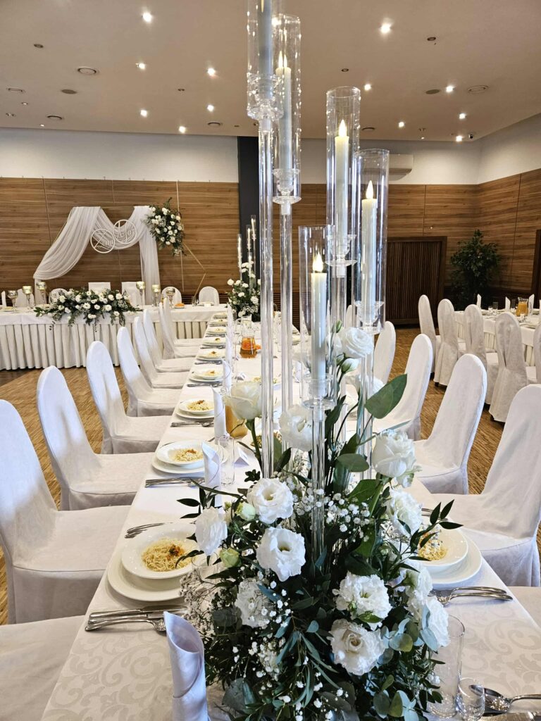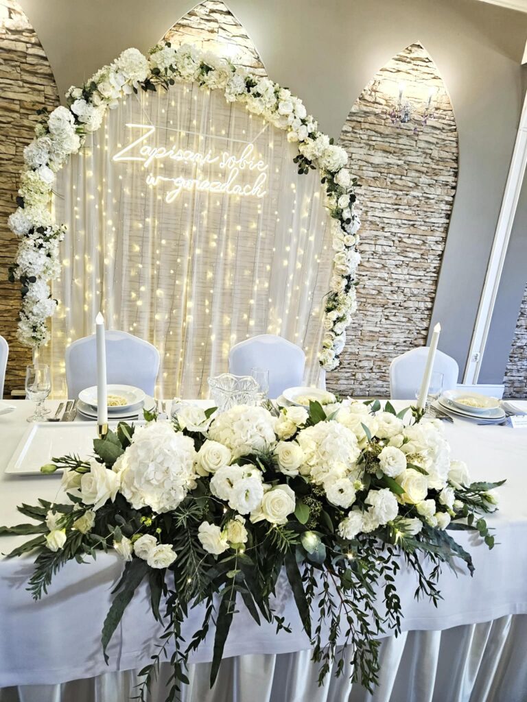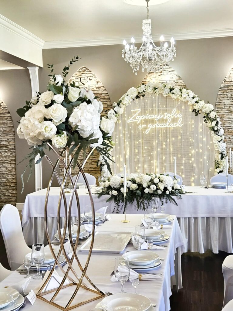 Oferujemy pełną florystykę, ścianki, światła, obrusy, serwetki i wiele innych elementów które wspólnie stworzą coś niezwykłego